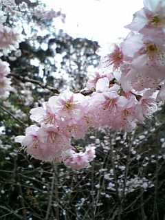 曇り空の中、松山城へ歩いて行きました。もう、寒桜はこんなにも咲いてます。